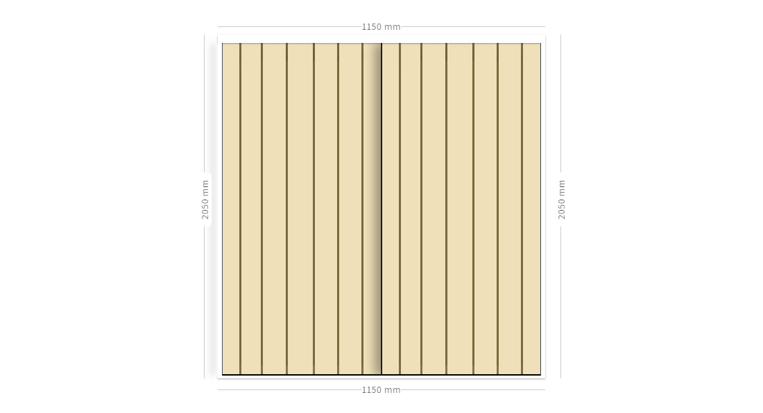 1150mm (Top Width), 1150mm (Bottom Width), 2050mm (Left Height), 2050mm (Right Height), double (track Style), existing floor batten (doors are setting on), white (frame color), slimline (frame style), 2 (doors)